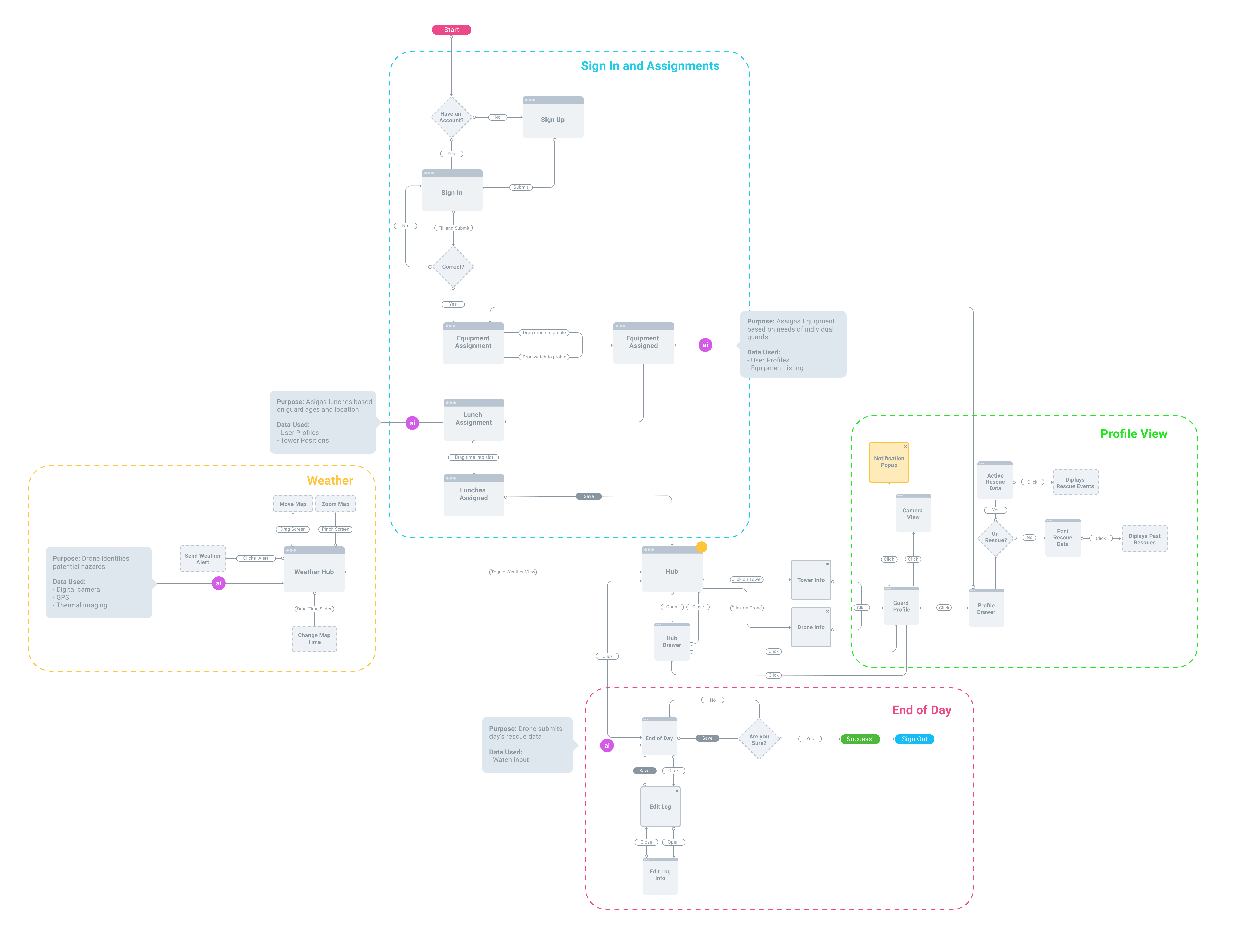 Soterias concept is a use case based on research coming from New Smyrna Beach in Florida. Lifeguards have the challenging job of scanning for any issues on the beach. Lifeguards are required to monitor 1.8 miles of populated beach. Problems can arise at any time, with an average of 1-3 rescues per day, not counting animal attacks. Lifeguards are given an emergency radio and tasked to direct the beach and keep a sharp eye for any distress.